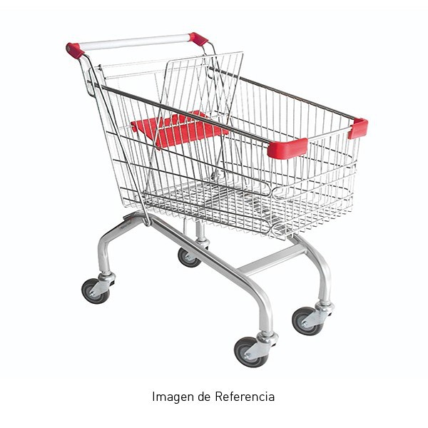 Carro supermercado 130 lts. con rueda fija y giratoria, carro genérico con una capacidad de 130 lts. con un acabado zincado brillante y dotado de 4 ruedas, dos pivotantes y dos fijas.
