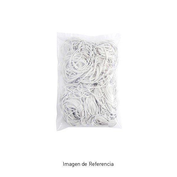 Bolsa de 500gr de elásticos blancos de 1.6mm. Artículo de oficina.